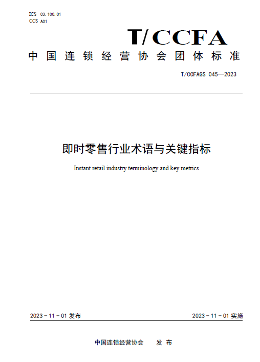 速途網11月6日訊(報道:喬志斌)日前,在京東到家、達達快送等行業代表的共同參與制定下,即時零售行業首個《即時零售行業術語與關鍵指標》(T/CCFAGS 045-2023)團體標準(以下簡稱標準),經中國連鎖經營協會(以下簡稱CCFA)正式發布。本次標準的制定發布,有助于填補國內與國際零售業在即時零售標準領域的空白,推動即時零售行業健康可持續發展。