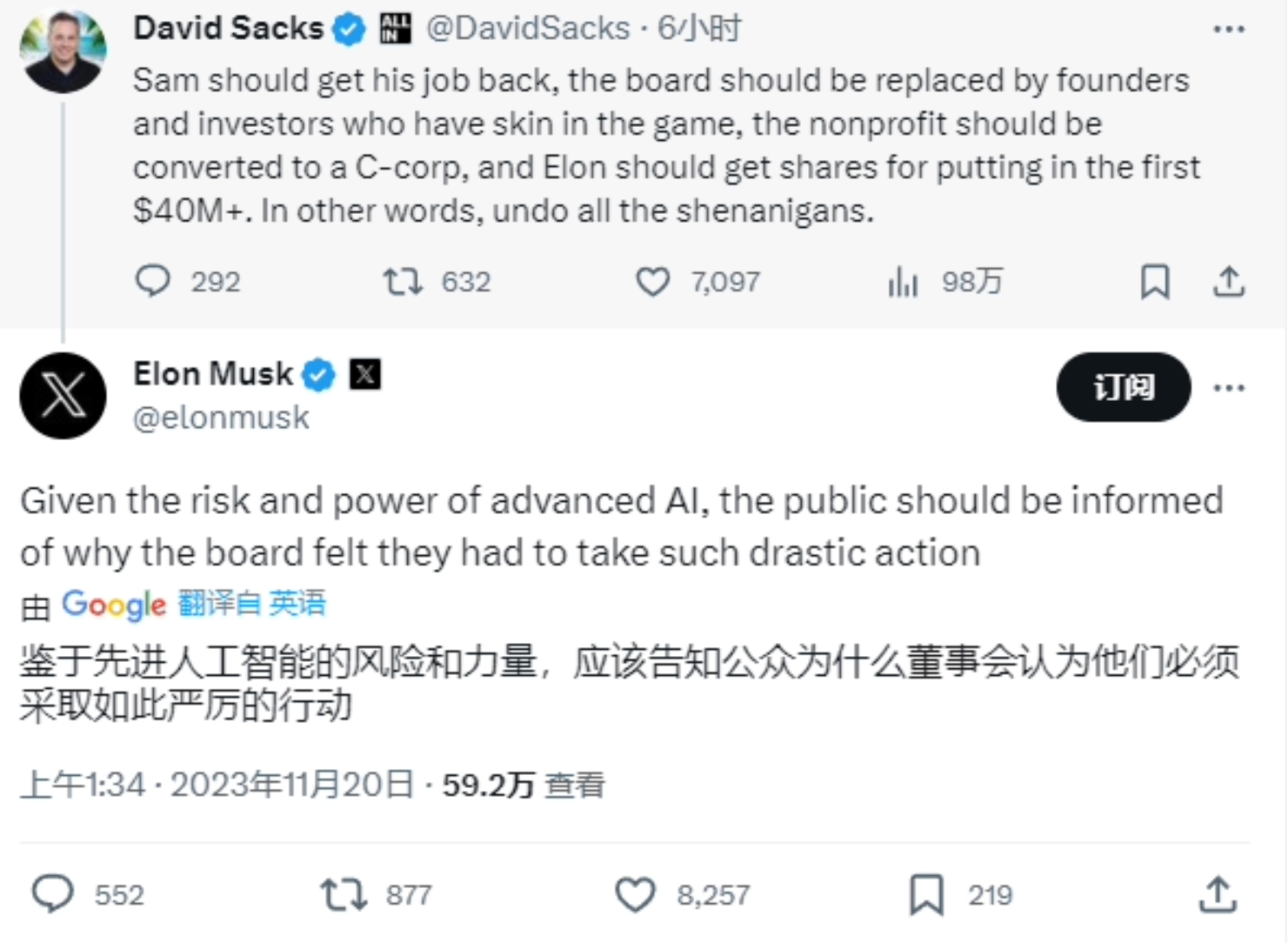 他在回應PayPal前COO大衛·薩克斯的一條帖子時表示:“考慮到先進人工智能的風險和力量,公眾應該被告知為什么董事會認為他們必須作出如此激烈的決定。”