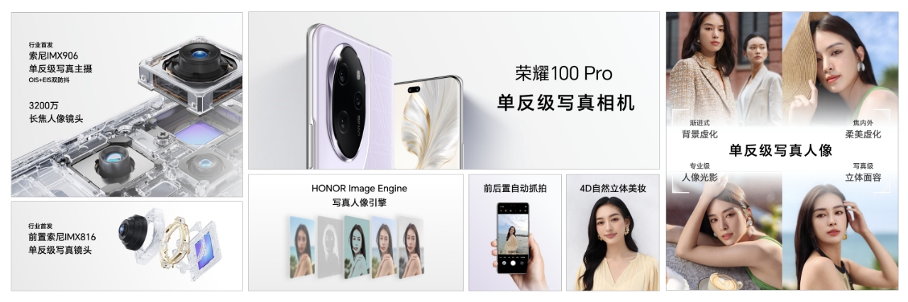 榮耀100系列以創(chuàng)新的單反級寫真相機為亮點,通過HONOR Image Engine寫真人像引擎的優(yōu)化,實現(xiàn)了單反級光學效果、寫真級立體面容和專業(yè)級人像光影。無論是在夜景還是逆光場景下,榮耀100 Pro搭載112°超廣角微距鏡頭、3200萬長焦人像鏡頭以及前置索尼IMX816單反級寫真鏡頭,為用戶帶來清晰出片、隨心記錄的影像體驗。全新升級的寫真人像引擎更支持4D自然立體美妝,智能美顏一秒上妝,為用戶打造個性化的隨身化妝師。
