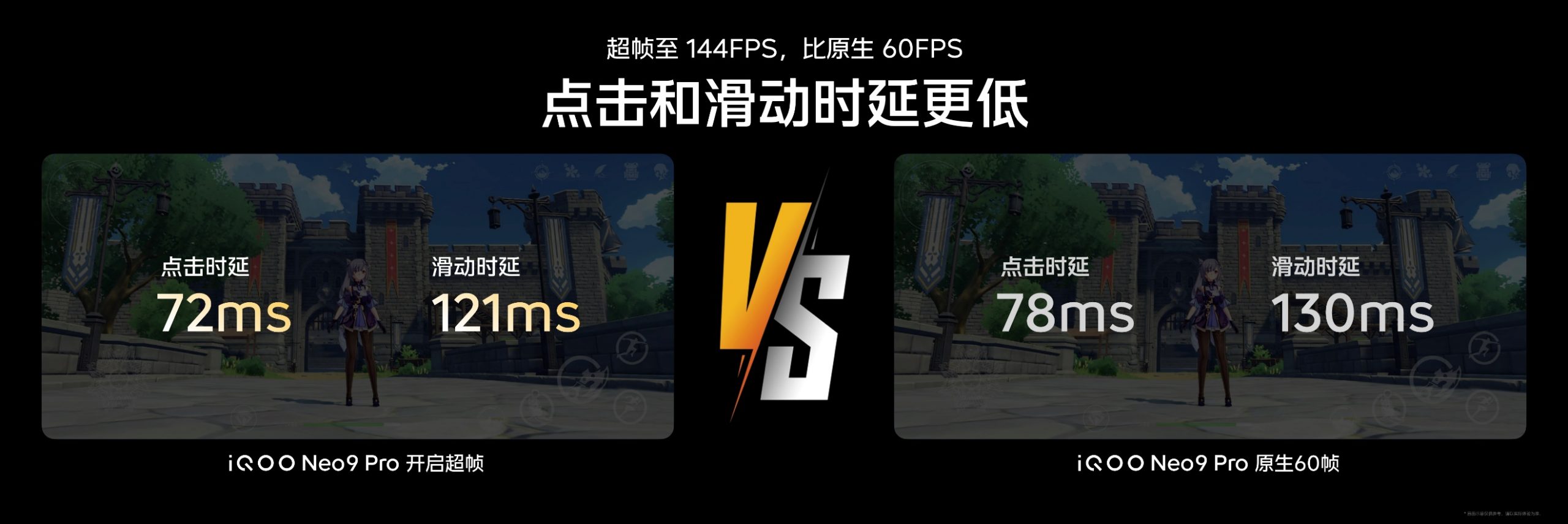 檢驗觸控技術的最佳場景是游戲,憑借多年作為KPL官方比賽用機的調校經驗,通過對KPL明星戰隊和選手的深訪,以及數月不斷的操控體驗測試和極致調校,在iQOO Neo9系列搭載的1.5K 144Hz 8T全天候超感屏上,實現了領跑行業的超感觸控解決方案—自研超感觸控V-Sync技術,通過完全對齊游戲從“渲染”到“顯示”整個鏈路的幀率,挑戰行業最低觸控時延。得益于該技術,暢玩國民級FPS手游60幀場景,時延低至37.92ms,領先業內友商產品近37%,讓玩家體驗到高質量超分超幀并發帶來暢爽無時延感。
