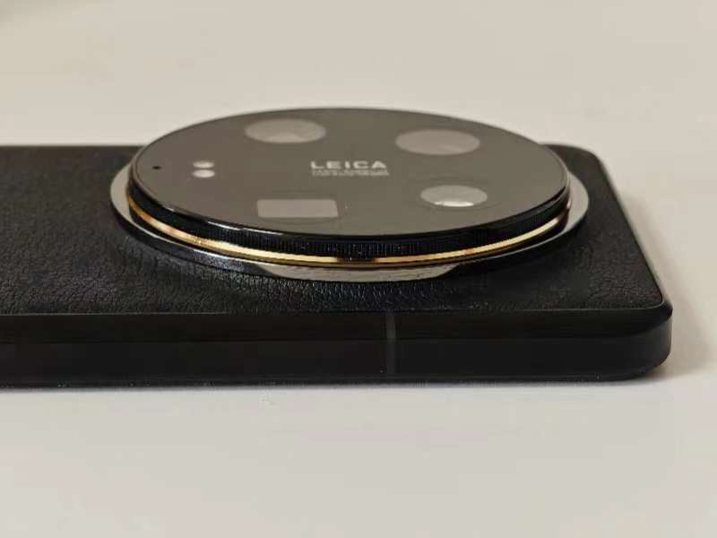 速途網這臺小米14 Ultra為經典的黑色配色,通體黑色的金屬中框,配合中間一整塊科納皮,再與頂部碩大的圓形相機Deco相得益彰,呈現出充足的一體感。影像Deco在保留原先金色裝飾圈的基礎上,還為鏡頭圈增加了巴黎飾釘紋做裝飾,讓鏡頭模組更加有層次感和立體感。這種設計語言在細節上追求極致,展現出了小米對于產品美學的追求和創新。