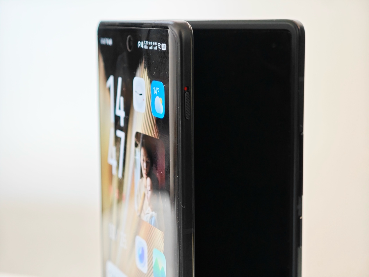vivo X Fold3 Pro的中框采用直角過渡設(shè)計,讓整機的線條更加硬朗、收斂,也更加耐用。中框側(cè)面保留了靜音鍵的兩段式滑塊,能快速切換手機的響鈴/靜音模式。