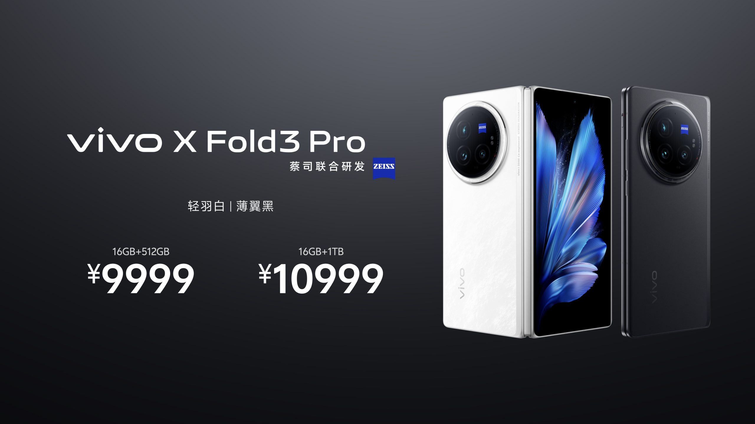 本次發(fā)布的vivo X Fold3系列包含輕羽白、薄翼黑兩種簡約配色。X Fold3 Pro的價格為9999元(16GB+512GB)和10999元(16GB+1TB),與市售主流折疊屏機型持平;而X Fold3的價格則分別為6999元(12GB+256GB)、7499元(16GB+256GB)、7999元(16GB+512GB)和8999元(16GB+1TB),來到與主流直板旗艦相同的區(qū)間,讓更多消費者可以享受到折疊屏帶來的創(chuàng)新體驗。