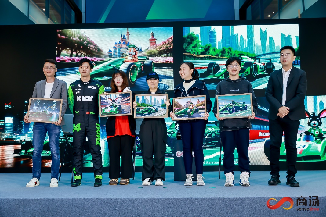除了幫助車隊及車手提升比賽成績外,借著此次在上海主場會面,商湯科技還將為周冠宇制作數字人版“小周”,通過數字人進行F1運動的科普、賽事智能解說、車迷互動等,讓更多人感受到賽車的魅力。此外,活動上還迎來了五位周冠宇的幸運粉絲,他們利用商湯AI文生圖大模型秒畫生成酷炫的賽車海報,為小周助陣加油。