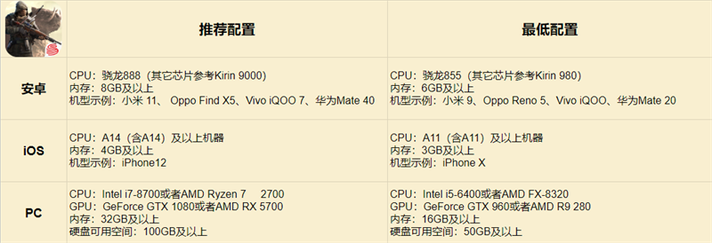 針對配置要求,官方在開測前夕便公開了啟程測試最低兼容設備:安卓驍龍855機型,其它芯片參考Kirin 980,內存最低6GB;iOS端iPhone X起,內存最低3GB。至于PC端,最低配置為Intel i5-6400或AMD FX-8320,內存至少16GB。 為了保證最佳游戲體驗,建議流浪者按照官方推薦配置進入游戲。