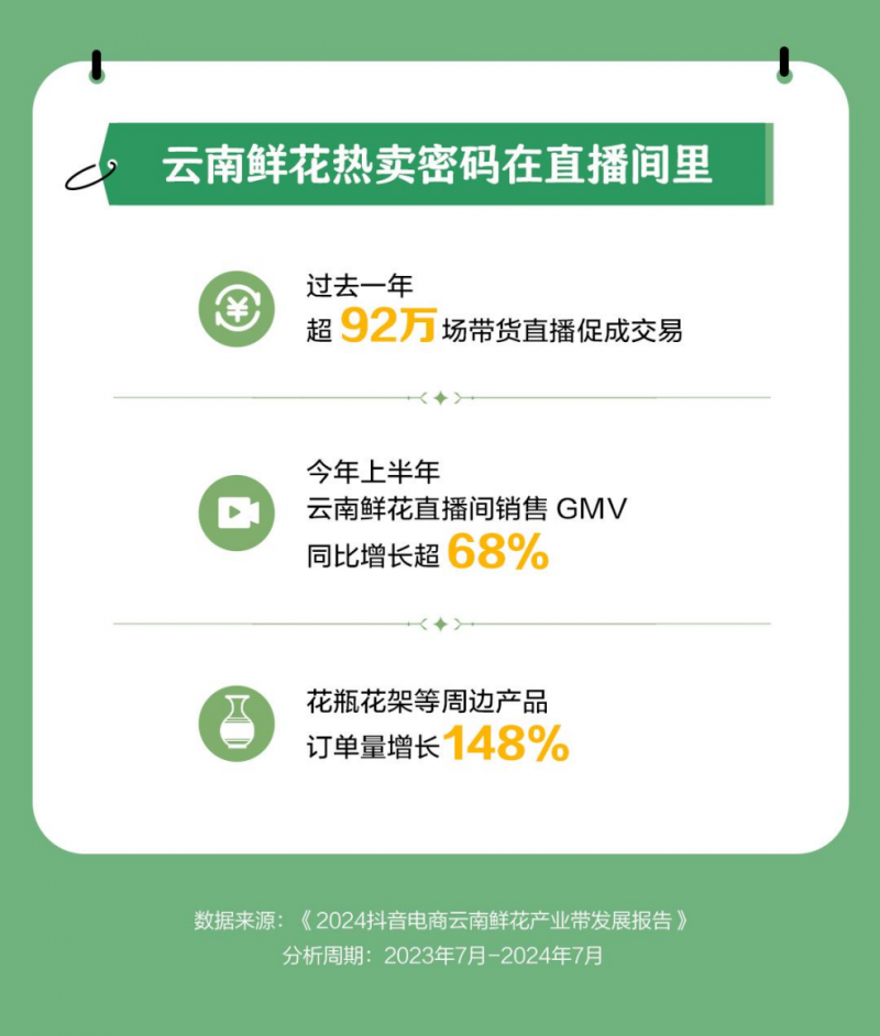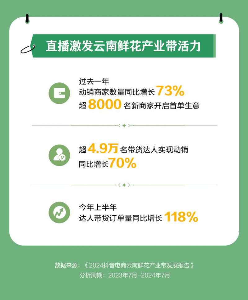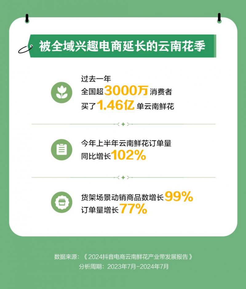 8月2日,抖音電商“2024云南鮮花趨勢分享會(huì)暨七夕大促啟動(dòng)會(huì)”在昆明舉行。活動(dòng)現(xiàn)場,該平臺(tái)發(fā)布了《2024抖音電商云南鮮花產(chǎn)業(yè)帶發(fā)展報(bào)告》(下稱“報(bào)告”),全面呈現(xiàn)過去一年云南鮮花產(chǎn)業(yè)帶的發(fā)展情況。