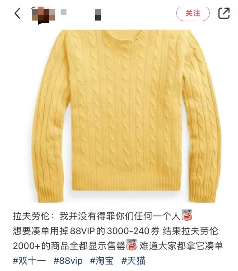 雙十一尾款日當天,拉夫勞倫淘寶店的商品被大量搶購,但這背后的真相卻讓人哭笑不得。