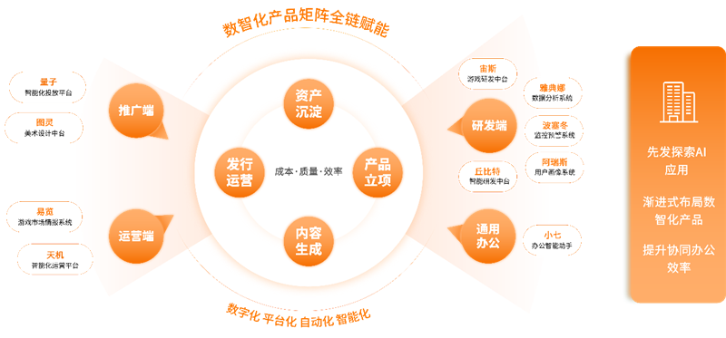 根據公司過往公開資料顯示,一方面,三七互娛是少有的從辦公工具層面就開始加碼AI的企業。企業內部AI辦公工具“小七”已經升級為智能辦公助手,功能覆蓋了搜索查詢、做圖、寫文檔、翻譯、客服、數據分析、團隊分析等多個方面。這一舉措不僅提升了企業的協同辦公和整體運轉效率,也加深了全體員工對AI技術的理解和認識,從思維層面引導員工自發考量AI對游戲的提升。