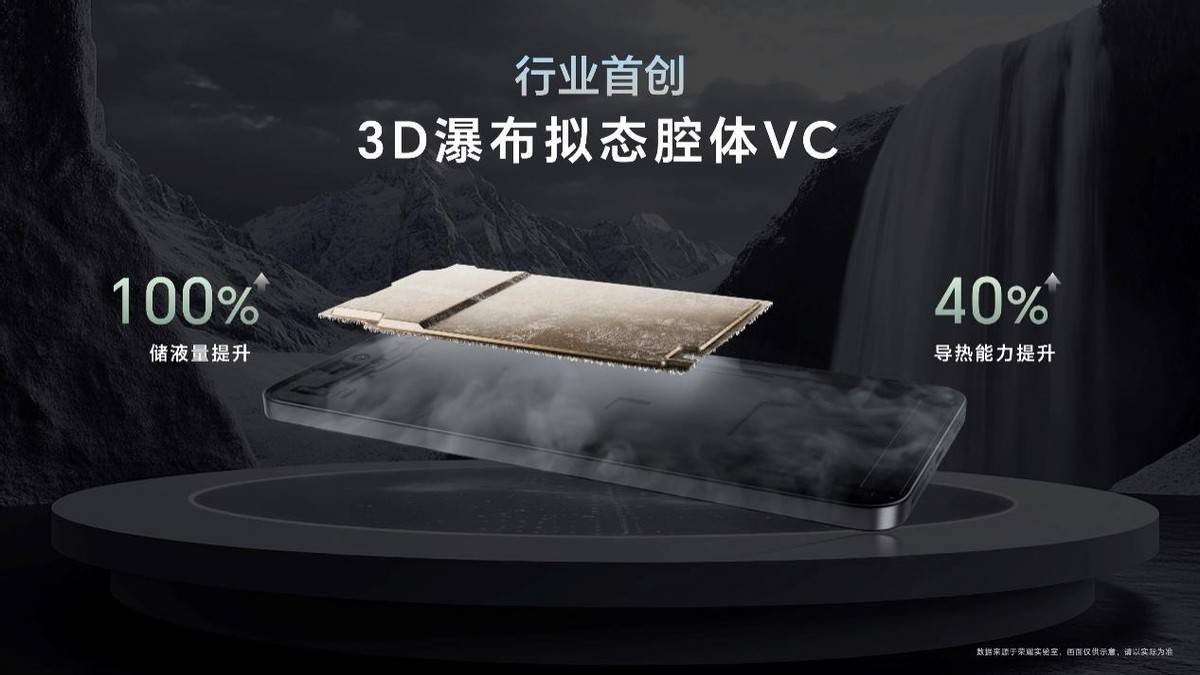 此外,榮耀GT搭載第三代驍龍8旗艦芯,配合LPDDR5X內存和UFS 4.0閃存,組成了性能鐵三角,更通過革新性的散熱設計進一步提升用戶體驗。榮耀GT搭載全新的3D自然態循環散熱系統,采用業界首創的3D瀑布擬態腔體VC與雙干流毛細網設計,使VC單體性能較上一代提升了10%,實現了行業領先的散熱效果。榮耀GT還引入了航天級導熱凝膠和2K高性能石墨,進一步增強了散熱效果。