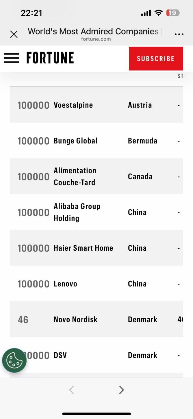 該榜單是由全球3300多位評委,依據創新能力、社會責任、全球化競爭力等9大指標選出。阿里、海爾智家、聯想等中企上榜。