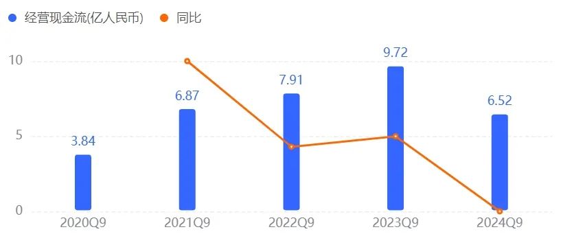 同時(shí),在當(dāng)前服裝市場競爭激烈、需求波動(dòng)的情況下,將大量資金鎖定在固定資產(chǎn)上,會(huì)降低公司資產(chǎn)的靈活性和流動(dòng)性。一旦市場環(huán)境發(fā)生變化,公司難以迅速調(diào)整戰(zhàn)略,應(yīng)對風(fēng)險(xiǎn)的能力將被削弱。2024年前三季度,比音勒芬的經(jīng)營性現(xiàn)金流凈額為6.52億,較去年同期的9.72億驟降32.98%。
