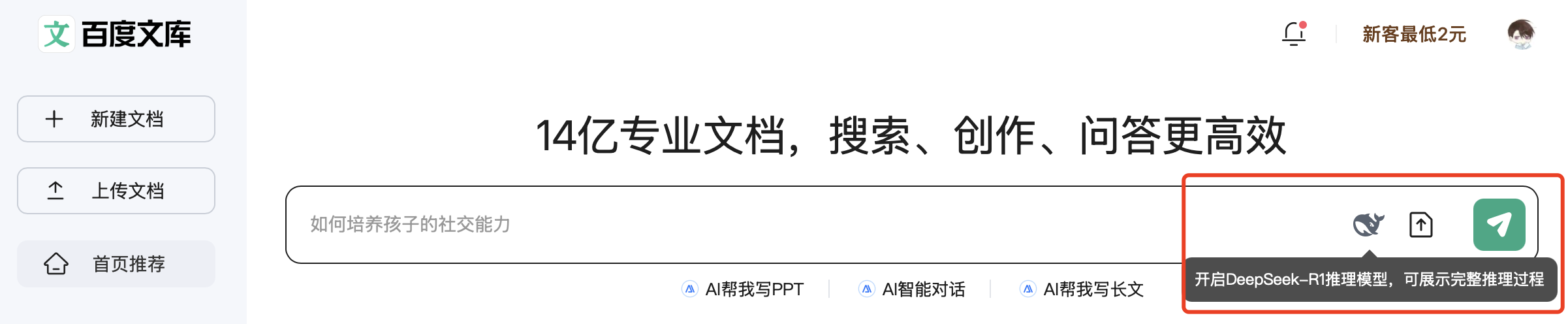 在最新版本的百度文庫中,用戶不僅能夠借助自然語言處理技術實現與AI的對話式搜索,而且在滿血版DeepSeek-R1模型的支持下,系統能夠生成更為精確的回答。