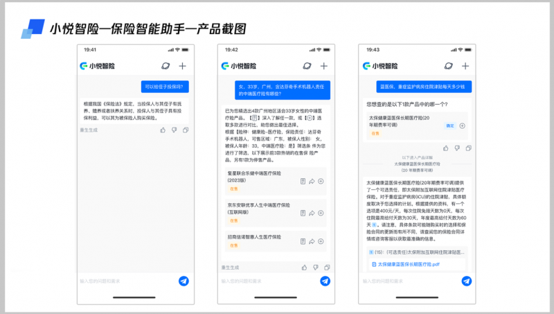 對于客戶而言,小悅智險是“更懂保險的掌上顧問”,它可以針對特定場景和保險責任提供專業咨詢;智能篩選并輸出產品短清單,輕松“解碼”行業術語與復雜條款。對于保險企業來說,它是一位成熟的“保險訓練導師”,通過智能化培訓與指導,幫助新人快速掌握保險知識, 顯著縮短成單周期,助力團隊高效發展。