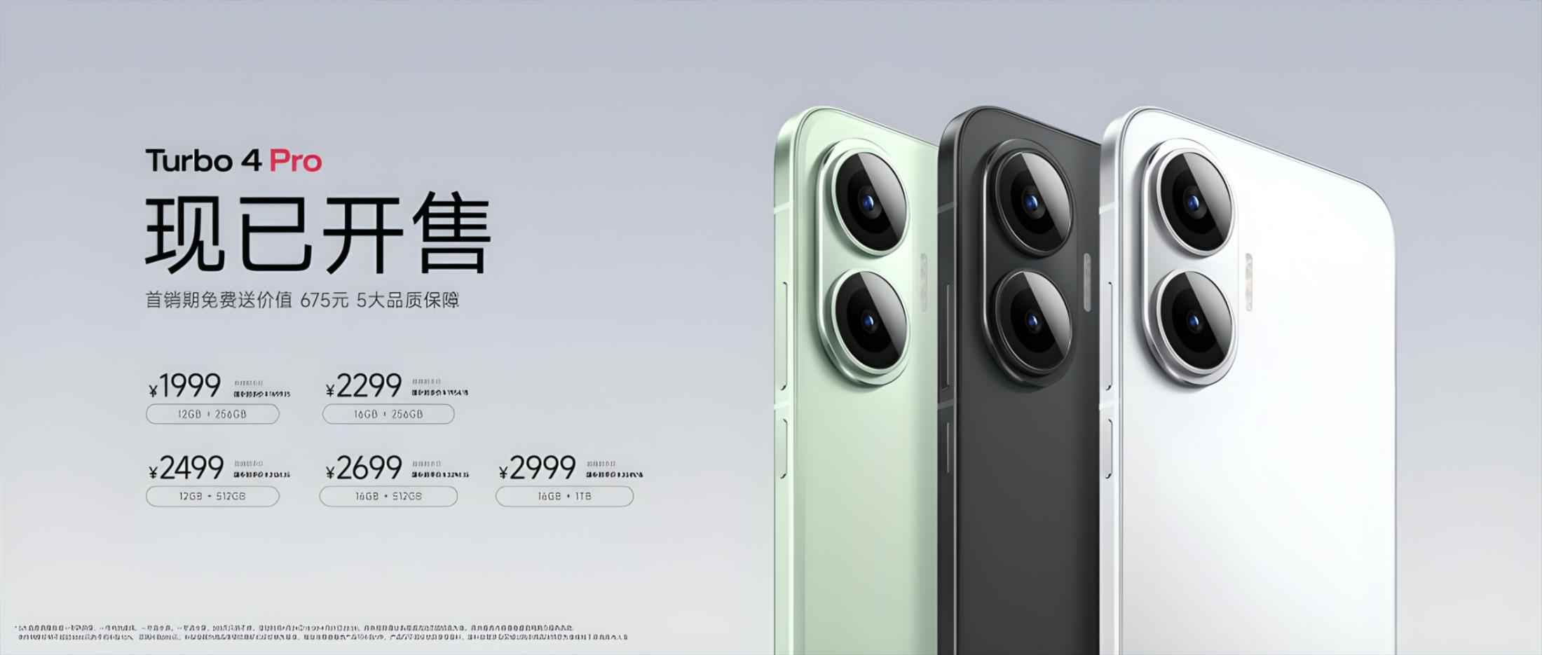 REDMI Turbo 4 Pro12GB + 256GB 版本首銷到手價:1999元,16GB + 256GB 版本首銷到手價:2299元,12GB + 512GB 版本首銷到手價:2499元,16GB + 512GB版本首銷到手價:2699元,16GB + 1TB 版本首銷到手價:2999 元。國補后,12GB + 256GB 版本售價:1699.15 元,16GB + 256GB 版本售價:1954.15 元,12GB + 512GB 版本售價:2124.15 元,16GB + 512GB版本售價:2294.15 元,16GB + 1TB 版本售價:2549.15 元。首銷期間免費送價值 675 元 5 大品質保障。