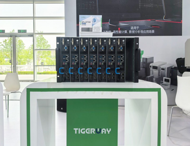 展會(huì)現(xiàn)場(chǎng),威爾創(chuàng)新(TIGERWAY)攜自研AI服務(wù)器–GPLUSTER-LC首次發(fā)布。這是一款6U高密計(jì)算服務(wù)器,支持混插多種架構(gòu)GPU、NPU,實(shí)現(xiàn)在一臺(tái)機(jī)器內(nèi)同時(shí)獨(dú)立運(yùn)行多種業(yè)務(wù)應(yīng)用。