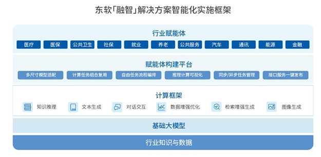 在智能化方面,東軟集團構建了“融智”解決方案智能化實施框架,全面加速AI+行業的戰略布局與實施,將AI深度嵌入醫療、汽車、城市治理等核心業務流程。