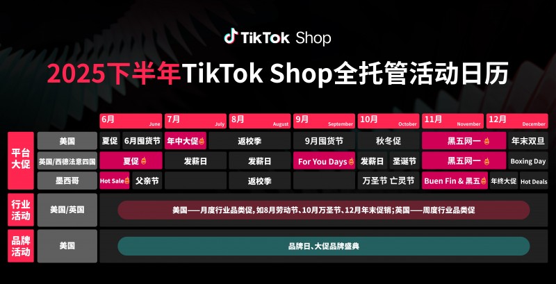 TikTok Shop下半年將推出夏季大促、黑五等全球營銷活動,覆蓋美國、歐洲、墨西哥等重點市場。TikTok Shop還推出了平臺整體權益保障、新市場專屬權益保障,全方位助力商家搶先布局下半年電商旺季。