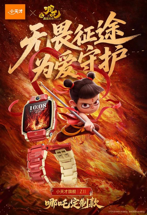 作為小天才與國產動畫電影《哪吒之魔童鬧海》的深度聯動之作,Z11哪吒定制款在外觀設計上處處彰顯巧思。