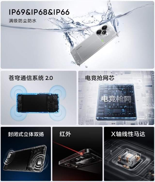 旗艦體驗方面,其支持IP69+IP68+IP66滿級防水,可短時抵抗高壓和高溫水流,讓手機無懼生活中的各種意外。另外,雙頻GPS+四頻北斗、X軸線性馬達(dá)、Hi-Res立體雙揚聲器、360° NFC、紅外遙控等實用配置,細(xì)節(jié)體驗全方面看齊高端。
