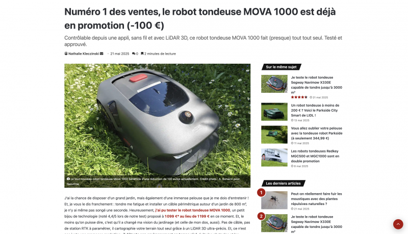 (法國科技媒體Neozone在標題中提到MOVA銷量第一)