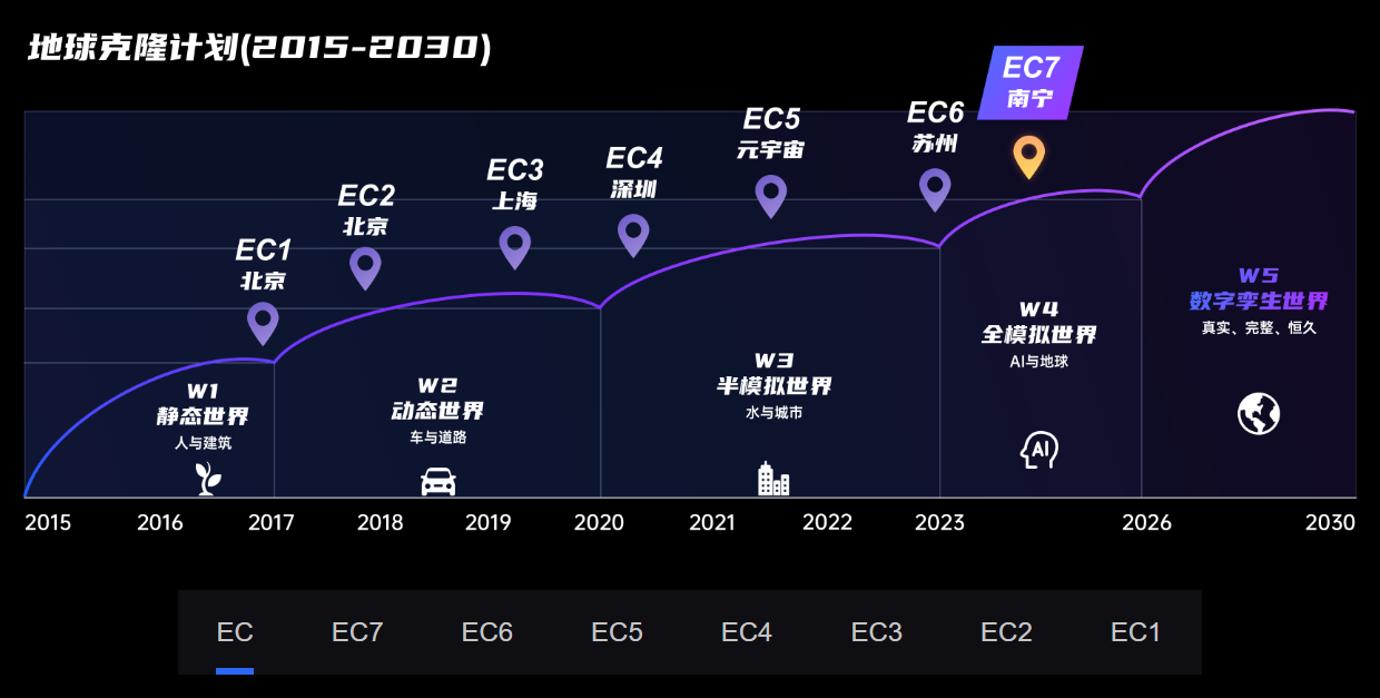 51WORLD的“地球克隆計劃”是公司的核心戰(zhàn)略之一,目標(biāo)是在2030年完成第五階段,以用于解決真實世界中關(guān)于交通擁堵、AI訓(xùn)練、時空沉浸、安全預(yù)警、氣候預(yù)測、能源工業(yè)等應(yīng)用領(lǐng)域的各種現(xiàn)實問題。