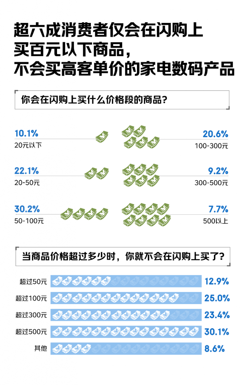 與此形成鮮明對照的是,消費者最不會在閃購上買的東西有家電、家具等大件產品,電腦等高客單價3C數碼產品及珠寶、腕表、包包等奢侈品。有受訪者坦言:“家電數碼、美妝護膚等產品,更關注品質和價格,其次才會關注配送時效。”