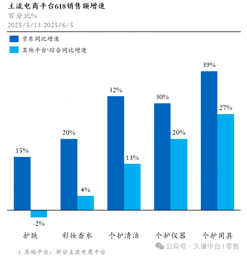 在美妝個(gè)護(hù)領(lǐng)域,京東以“價(jià)格簡(jiǎn)化+商戶共贏”雙核策略突圍?!鞍肽曜畹蛢r(jià)”策略(活動(dòng)價(jià)低于180天最低價(jià)自動(dòng)參與)和“官方立減15%”的簡(jiǎn)化規(guī)則,消除湊單復(fù)雜性,直接降低消費(fèi)決策門檻,同時(shí)配合領(lǐng)券滿1000減120、PLUS會(huì)員滿1500元減120元等定向優(yōu)惠直接讓利給消費(fèi)者。針對(duì)在6月 30 日前入駐的美妝新商家,京東推出了傭金激勵(lì)政策,促進(jìn)品牌商家實(shí)現(xiàn)高質(zhì)量增長(zhǎng)。618周期內(nèi),京東在個(gè)護(hù)用具、個(gè)護(hù)清潔等幾個(gè)品類的銷售額同比增速均在30%以上,高于其他平臺(tái)綜合同比增速。
