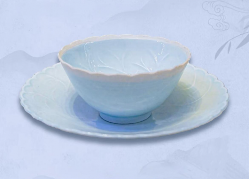 (青白釉葉脈紋印花口盞 現藏于中國國家博物館)