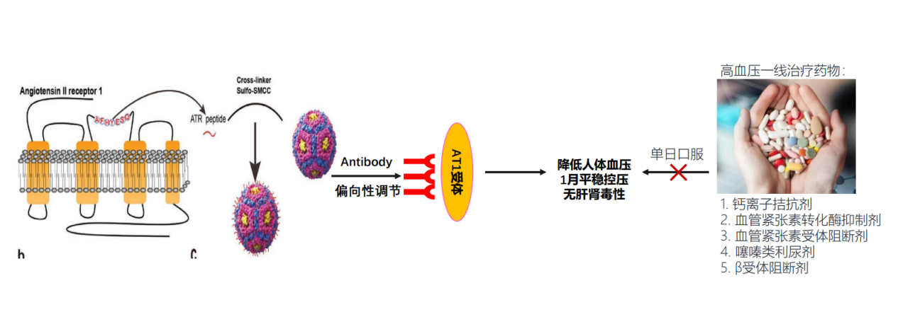 作為解決高血壓防治瓶頸問題的新路徑,治療性降壓疫苗HJY-ATRQβ-001曾入選“國家重大新藥創制專項項目備選庫“,同時還被列入“2022年科創中國《先導技術》榜單”。其利用疫苗來誘導和增強抗體特定的免疫反應,以達到有效控制病情的目的。與傳統化學藥物相比,其效力持續時間更長,能夠長期平穩有效地降壓,這一優勢將顯著改善高血壓治療的依從性和控制率。