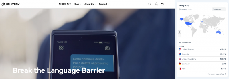 當科大訊飛依托SHOPLINE開啟全球化征程時,初期僅配置單一國際站(美元結算/英語界面),但隨著產品行銷全球30余國,iFLYTEK逐步在SHOPLINE架構內開通澳洲、加拿大、英國、意大利等精細化子市場,摒棄傳統多域名站點(如iflytek.de/.fr/.uk獨立運營)的模式,轉而通過統一站點驅動全球本地化體驗升級。