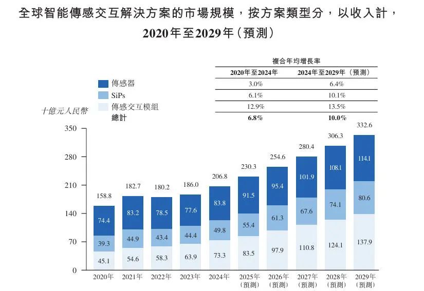 同時,歌爾微的業務結構與行業趨勢也有些“背道而馳”。灼識咨詢數據顯示,2020年至2024年,SiP和傳感交互模組的復合年增長率分別為6.1%、12.9%,遠高于傳感器的3%;同時,預測2024年至2029年,SiP和傳感交互模組的復合年增長率分別達10.1%和13.5%,遠超傳感器的6.4%。