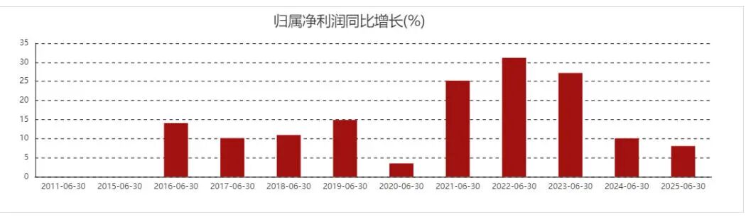 回顧近三年業(yè)績軌跡,江蘇銀行的增長曲線已呈現(xiàn)放緩趨勢。2022年至2024年,江蘇銀行實現(xiàn)營業(yè)收入705.7億元、742.93億元、808.15億元,分別同比增長10.66%、5.28%、8.78%;實現(xiàn)歸母凈利潤253.86億元、287.5億元、318.43億元,分別同比增長28.9%、13.25%、10.76%。到2025年上半年,頹勢進一步顯現(xiàn)。