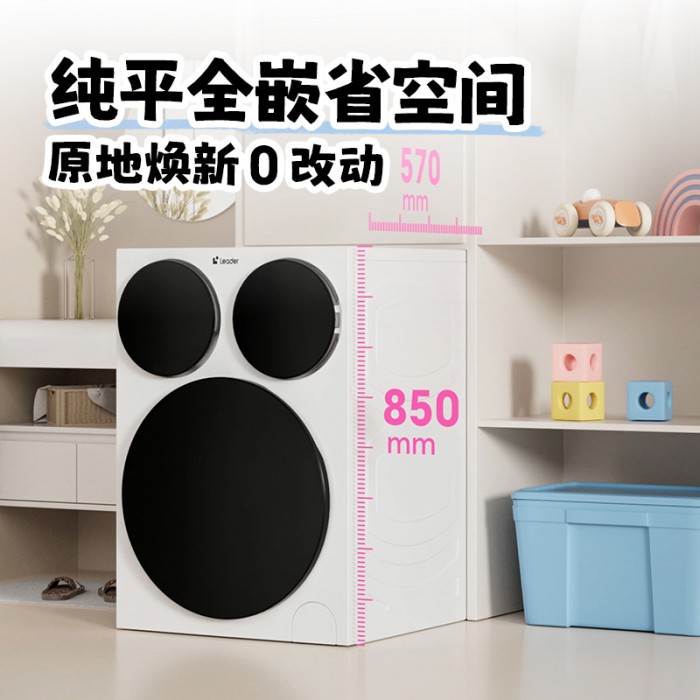 標(biāo)準(zhǔn)尺寸“傻瓜式”安裝,想換就能換。Leader懶人三筒洗衣機(jī)標(biāo)尺三烘版這次特別將整機(jī)高度設(shè)計(jì)為850mm行業(yè)標(biāo)準(zhǔn)尺寸,可輕松嵌入絕大多數(shù)家庭櫥柜。不論你是新房裝修還是舊機(jī)換新,都不用額外改水電、拆柜子。安裝只需一個(gè)電源、一個(gè)進(jìn)水、一個(gè)排水,傳統(tǒng)洗衣機(jī)怎么裝,它就怎么裝。