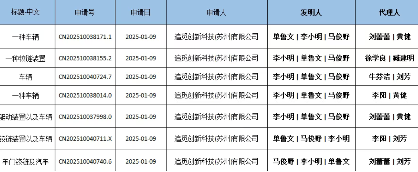 文章指出,7項專利均圍繞同一套無B柱車門系統,發明人僅為3位工程師,而代理該批專利的專利代理人多達7位。