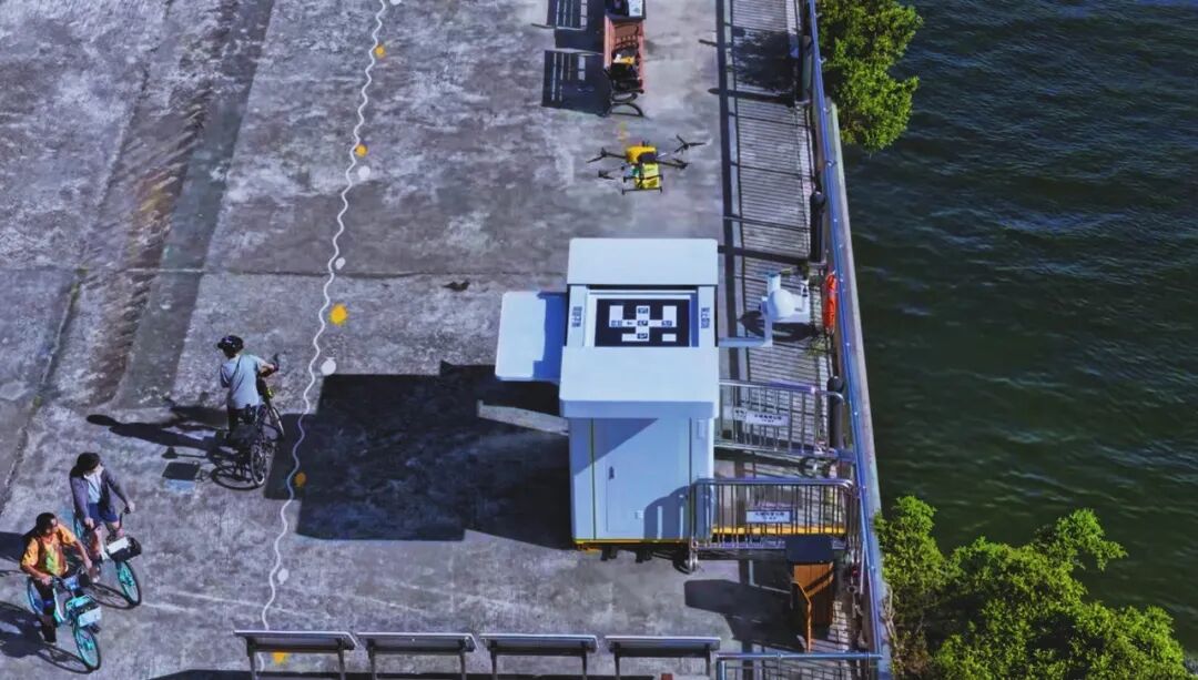 在香港,新航線從香港科學園直達大埔海濱公園碼頭,配送時間從46分鐘縮短到8分鐘。同時,全港首個防風防水的自動化M-Port機場投入使用。用戶下單后,無人機自主規劃航線,憑取貨碼隨時取貨,幾乎不受天氣影響。值得注意的是,監管沙盒政策下,美團無人機已能實現多機同時作業,超重訂單配送效率大幅提升。
