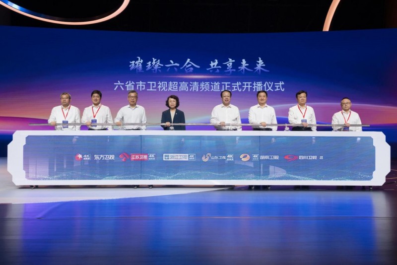 國家廣播電視總局、國家發改委、工業和信息化部、國家財政部,以及上海等六省市相關領導與產業鏈代表共同出席了這一盛會。儀式環節充滿科技感與未來感:嘉賓們通過點亮“能量矩陣”共筑產業聯盟,按下LED燈柱象征超高清網絡“進網入戶”,最終在推桿啟動中,六省市超高清頻道信號正式發出。