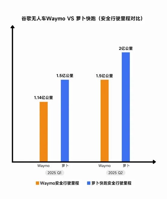 豐富的運營經驗也是核心增信點。最新數據顯示,蘿卜快跑累計提供超過1400萬次無人駕駛出行服務,安全行駛里程已超過2億公里,領先谷歌旗下無人駕駛公司Waymo的1.5億公里。