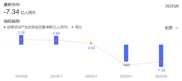 近日,昆侖萬維交出了第三季答卷:58.05億元營收同比暴漲51.63%,凈利潤1.9億元實現環比扭虧。但扭虧背后,公司仍在“失血”,其2025年前三季度經營性現金流凈額為-7.34億元,較上年同期的3.19億元正向流入下降330%,同時有息負債規模達11.9億元,貨幣資金儲備僅8.6億元。