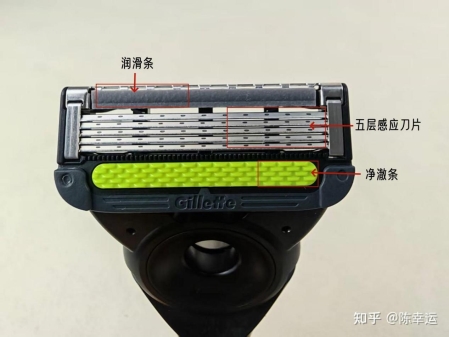 知乎答主“衛(wèi)小妖”分享了他的觀察:“我注意到刀頭前面有一條綠色的凈澈條,使用時(shí)能感覺到它在清除皮膚表面的油脂,就像用吸油紙一樣,讓后續(xù)刀片刮得更順暢。而刀片后面的潤滑條遇水后非常滑,能形成明顯的保護(hù)層,即使刮第二遍也很順滑,沒有干澀的摩擦感。”