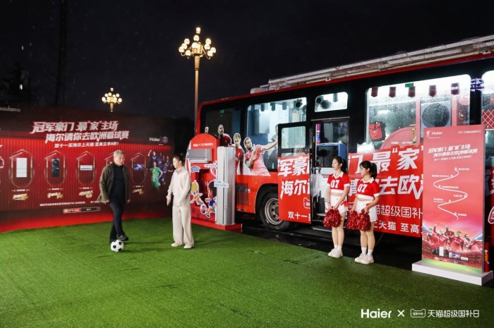 線下場景重構消費空間:長沙、北京等地鐵站內,海爾與利物浦、巴黎圣日耳曼聯合打造的創意海報,成為早晚高峰洶涌人流中的“視覺焦點”;在長沙,承載冠軍單品的冠軍球隊大巴穿梭于各大熱門景點,成為移動的風景線。當消費者行走在被海爾品牌視覺包圍的地鐵通道,或是偶遇穿梭于城市中心的冠軍大巴時,品牌已然從家電賣場走進了消費者的生活空間。