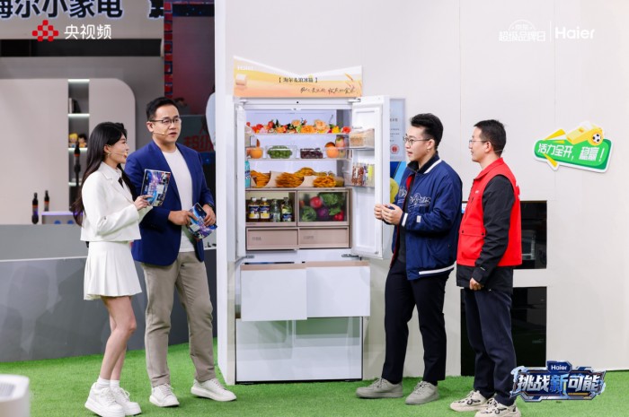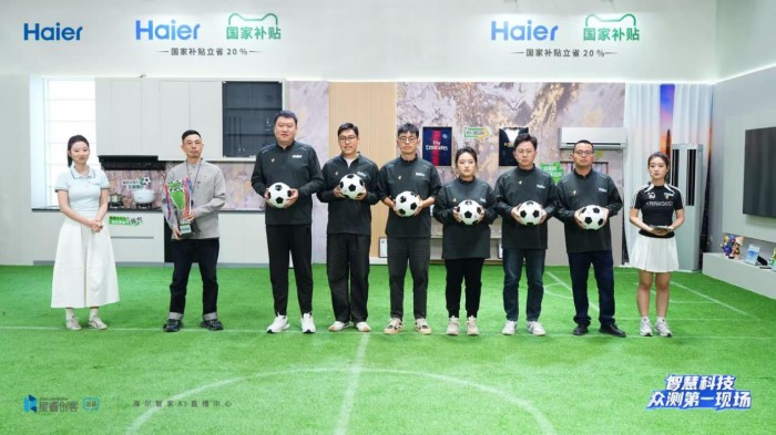 具體來看,在京東渠道,海爾聯合央視頻、京東超級品牌日共同打造《挑戰新可能》節目,通過一系列極限挑戰,將科技轉化為可感知的體驗。比如海爾麥浪冰箱歷經千里運輸,箱內食材抵達后仍舊鮮潤如初。此外,海爾還打造“周五足場日”IP,將家電產品與球迷生活場景強關聯。直播間內,主播身著球衣,場景布置充滿球隊元素,氛圍感十足。