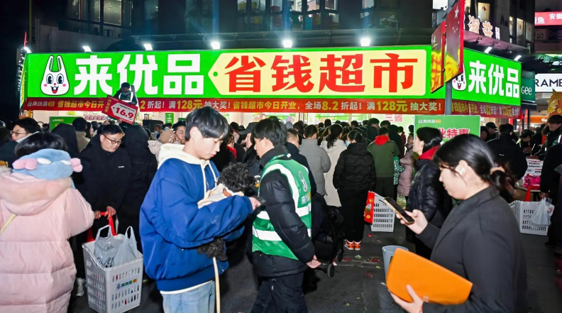 2025年1月10日,萬辰集團旗下“來優(yōu)品省錢超市”全國首家超級店于合肥武里山天街開業(yè)。該店面積約300平方米,SKU數(shù)量達3000余個,涵蓋零食、日化、烘焙、凍品及鮮鹵等多元品類。“來優(yōu)品省錢超市”通過“核心層+擴展層+戰(zhàn)略層”的三維布局,以網(wǎng)紅零食吸引年輕客群,并拓展高頻剛需品與自有品牌商品,同時依托供應(yīng)鏈效率實現(xiàn)“硬折扣”定價,為大眾市場提供高質(zhì)價比的綜合零售解決方案。