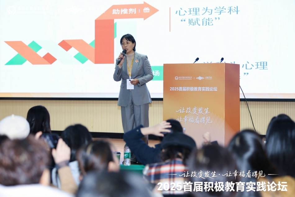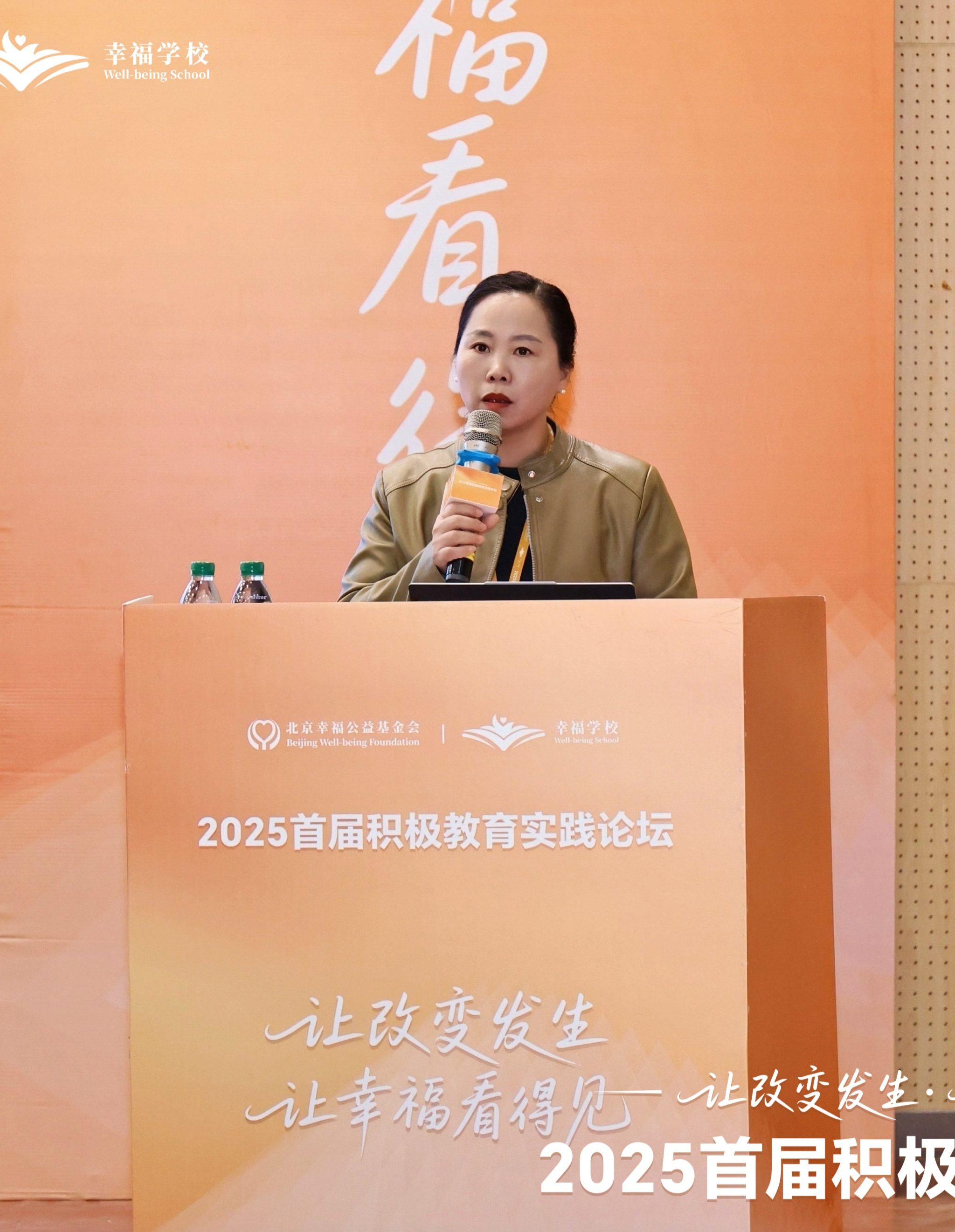 北京幸福公益基金會(huì)理事長王曉麗作為主辦方代表致辭。她指出,積極教育正在中國教育領(lǐng)域展現(xiàn)出蓬勃生命力——截至2025年10月,“幸福學(xué)校”項(xiàng)目已覆蓋190所學(xué)校,惠及教師2.6萬余人、學(xué)生37.5萬余人,形成了規(guī)模化的實(shí)踐網(wǎng)絡(luò)。她在致辭中強(qiáng)調(diào):“積極教育不僅是關(guān)注學(xué)生的心理健康,更聚焦于品格塑造與潛能激發(fā),是推動(dòng)教育高質(zhì)量發(fā)展的關(guān)鍵路徑。”
