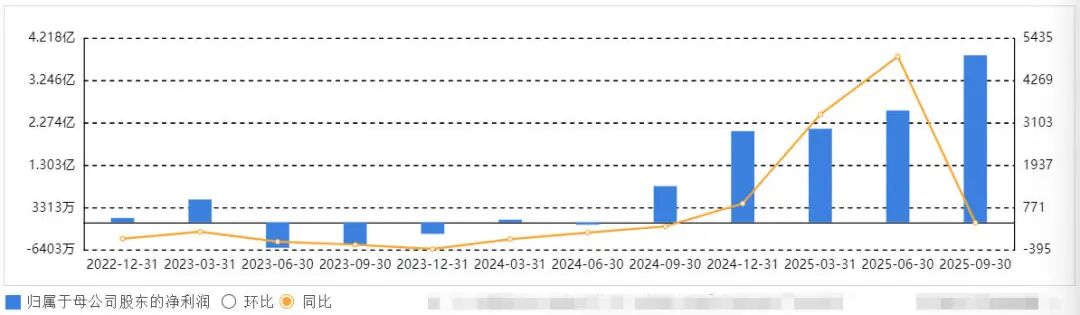 在凈利潤端,高增速可能缺乏可持續(xù)性。今年前三季度917.04%的歸母凈利潤增速,主要源于2024年同期基數(shù)較低(僅為8407萬元),并包含了大量非經(jīng)常性收益。