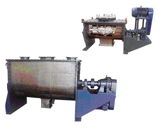 Details:WLDH mixer is combined of mixing barrel, spiral blades and driven parts. The spiral blades is made of two layers That is ,that is the inner ribbon makes the material move outwards,while the external ribbon makes the material move inwards which forms a good circulation of material. Characters: Big load factor ,small facility area, difficulty cleaning when mix sticky or convergent powder particles. Main Application:WLDH horizontal ribbon mixer applies to the mixing of sticky or convergent powder particles as well as the addition and mixing of liquid and pasty materials in powder particles because of difficulty in cleaning sticky particles,it suits for big capacity and not replace frequently mix conditions.